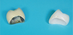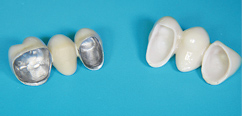 v.l.: Vollkeramikkrone, Keramikinlays, Verblendbrücke versus Vollkeramikbrücke